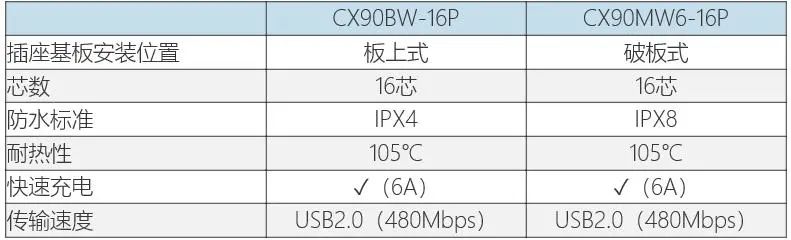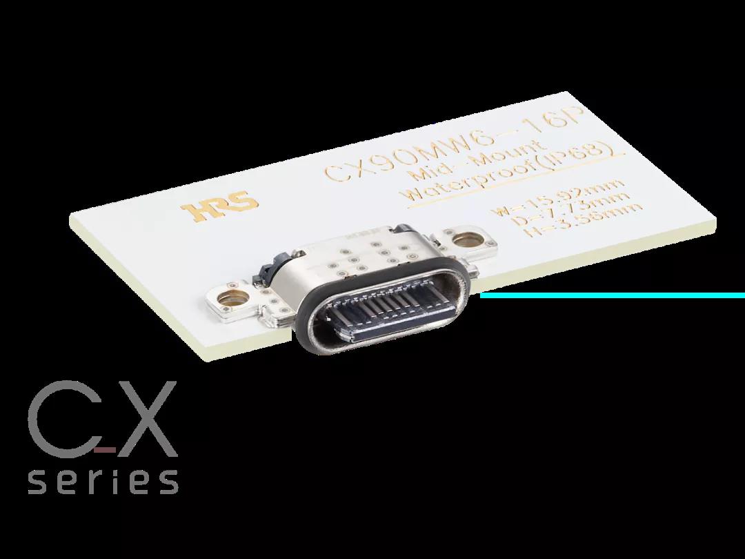1廣瀨電機為Type-C連接器CX系列開發出了一種新插座,本次發布的是支持IPX4防水的板上式16芯 “CX90BW-16P”。