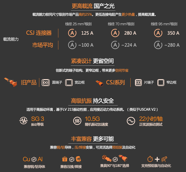 而對于中大型、大型電動汽車的主干道連接,CSJ2100則可以作為超大電流與功率傳輸的卓越能力擔當